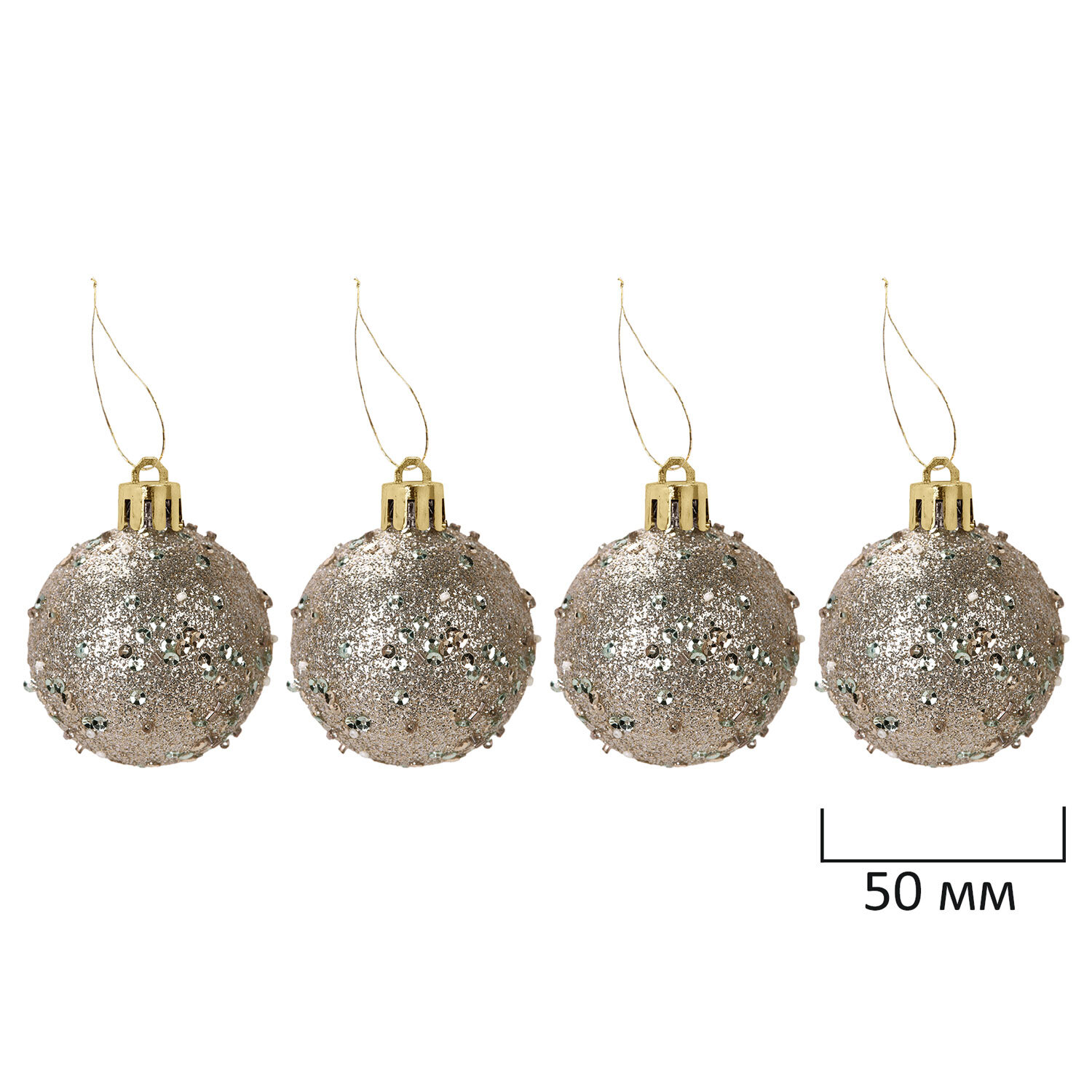 - 4 шара цвета шампань с глиттером (диаметром 5 см),