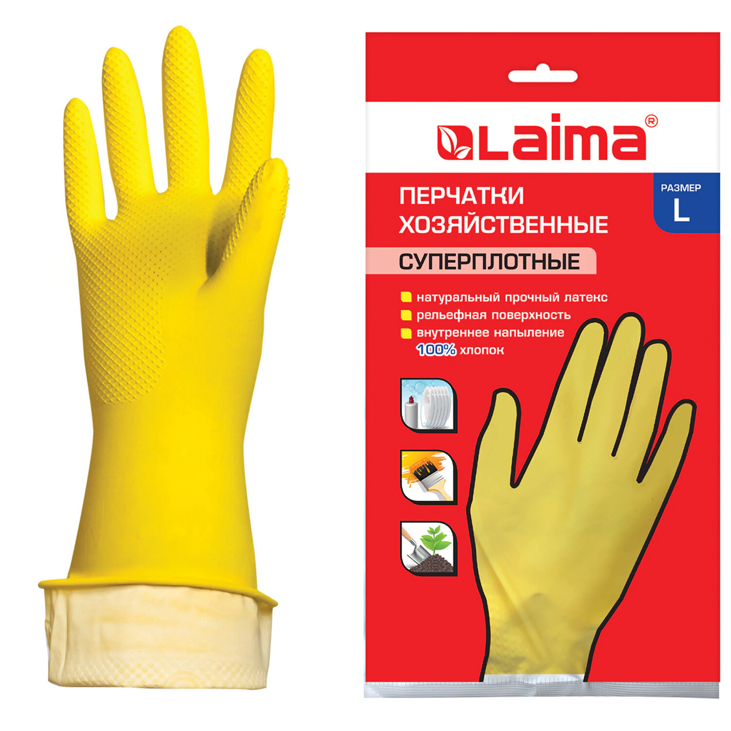 Хозяйственные латексные перчатки LAIMA защищают руки от воздействия грязи, влаги, моющих и чистящих средств при любых бытовых и хозяйственных работах: мытьё посуды, стирка белья, уборка, садоводческая работа и т.д.