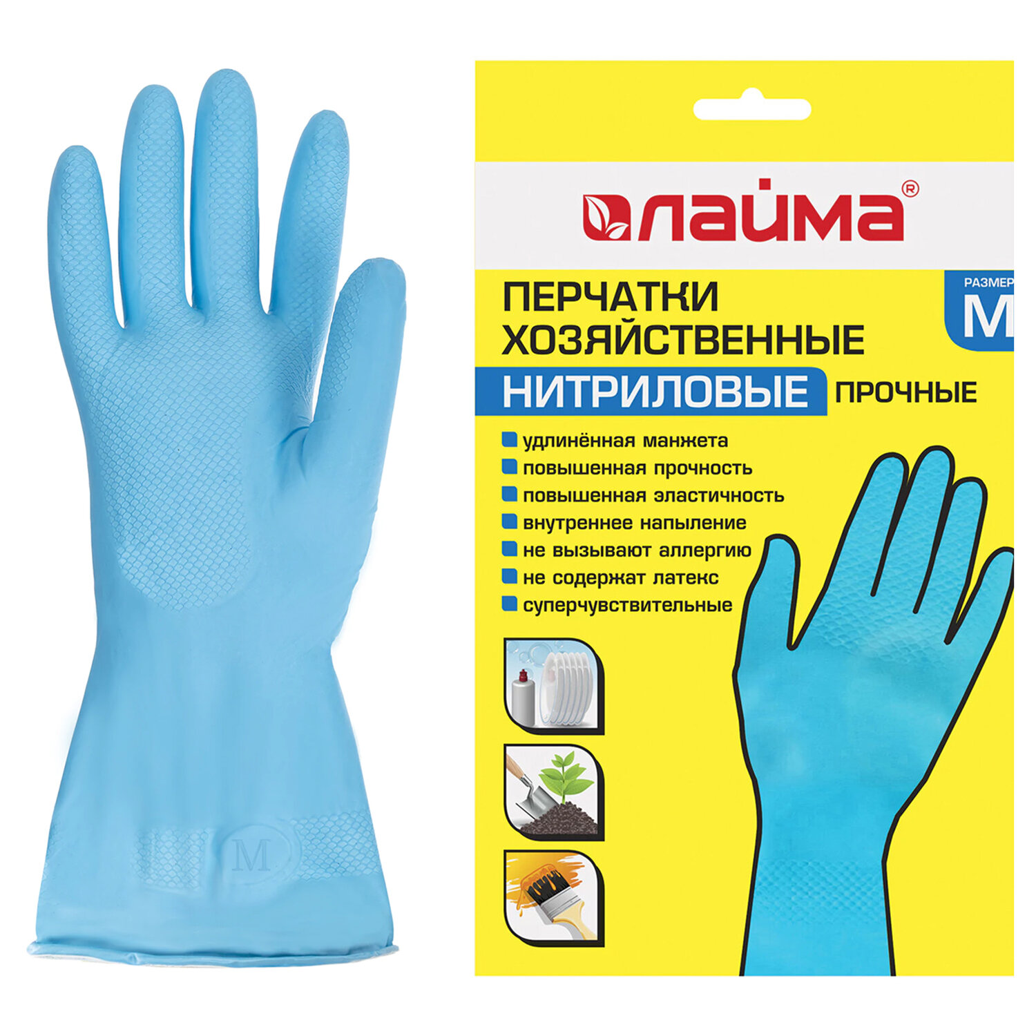 Перчатки хозяйственные LAIMA защищают руки от воздействия грязи, влаги, моющих и чистящих средств при любых бытовых и хозяйственных работах: мытьё посуды, стирка белья, уборка, садоводческая работа и т.д.