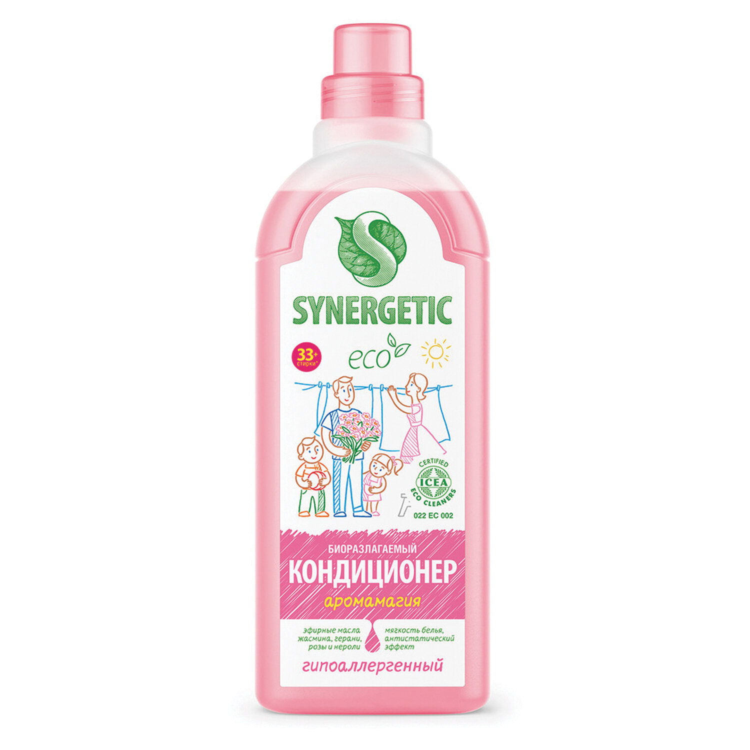 Биоразлагаемый кондиционер-ополаскиватель для белья SYNERGETIC "Аромамагия" – высокоэффективное средство, бережно ухаживающее за всеми типами ткани, в том числе деликатными, и придающее особую мягкость и нежность белью после стирки. Гипоаллергенный кондиционер-ополаскиватель нейтрализует остатки средств для стирки на ткани, помогает сохранить структуру ткани, защищая волокна от изнашивания и повреждения. Средство обладает антистатическим эффектом. Комплекс растительных К-тензидов обеспечивает легкую глажку белья после стирки и высыхания. Гипоаллергенная парфюмерная композиция с эфирными маслами жасмина, герани, розы и нероли придает белью нежный и приятный аромат. Подходит для ручной и машинной стирки, полностью выполаскивается из тканей. Международный экологический сертификат ICEA подтверждает биоразлагаемость, безопасность и эффективность средства. Биоразлагаемые компоненты не вредят микрофлоре септических установок.