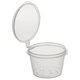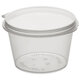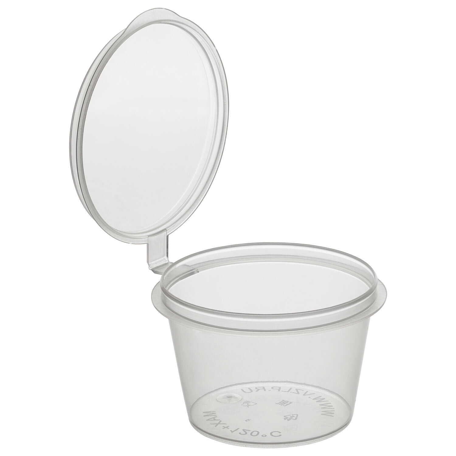 Порционный соусник прозрачный, с верхним закрытием имеет круглую форму. Верхнее закрытие соуса обеспечивает герметичность и сохранность продукта. Прозрачность позволяет видеть содержимое и контролировать его количество. Соусник произведен из качественного полипропилена (PP), прочного и устойчивого к жирам и кислотам, рассчитанного на высокие температуры (до +120 °C). Объем (вместимость) – 30 мл, диаметр – 42 мм, высота – 30 мм.