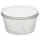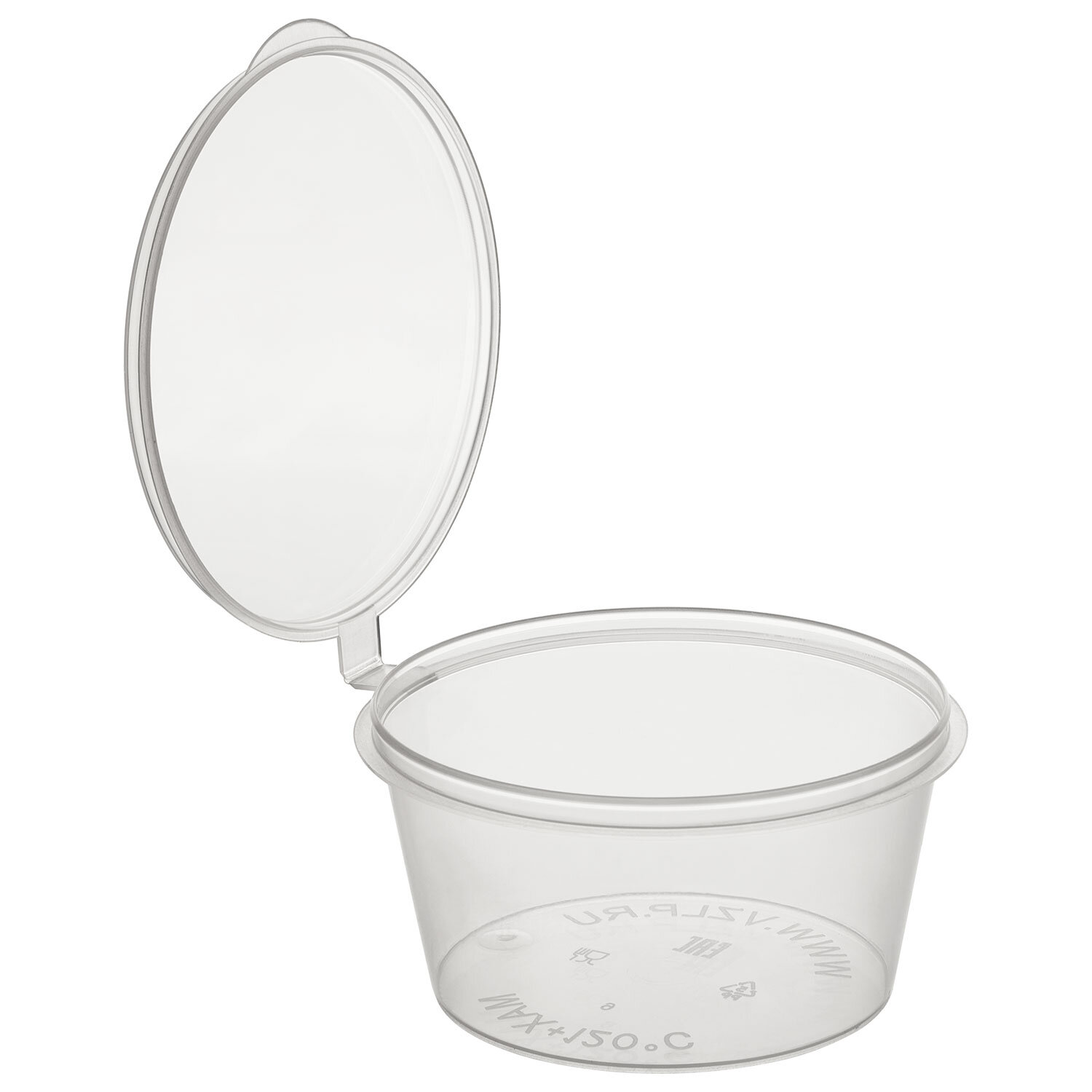Порционный соусник прозрачный, с верхним закрытием имеет круглую форму. Верхнее закрытие соуса обеспечивает герметичность и сохранность продукта. Прозрачность позволяет видеть содержимое и контролировать его количество. Соусник произведен из качественного полипропилена (PP), прочного и устойчивого к жирам и кислотам, рассчитанного на высокие температуры (до +120 °C). Объем (вместимость) – 80 мл, диаметр – 62 мм, высота – 33 мм.