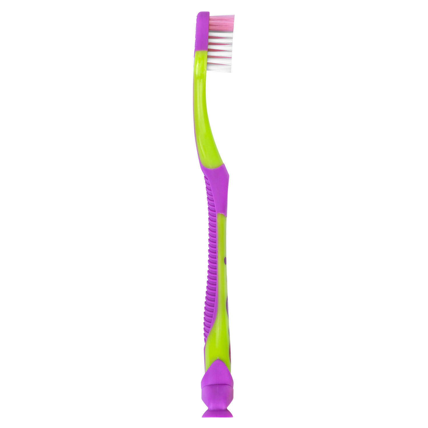 Мягкие щетинки деликатно полируют зубную эмаль, не травмируя нежные детские десны. Тонкие щетинки проникают между зубов, аккуратно полируя зубы, удаляя налет и не травмируя эмаль.