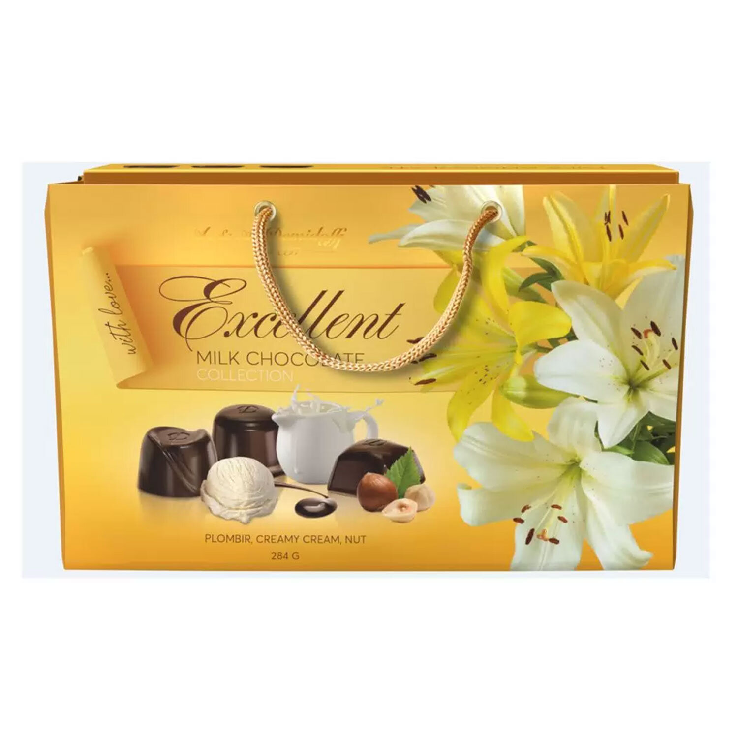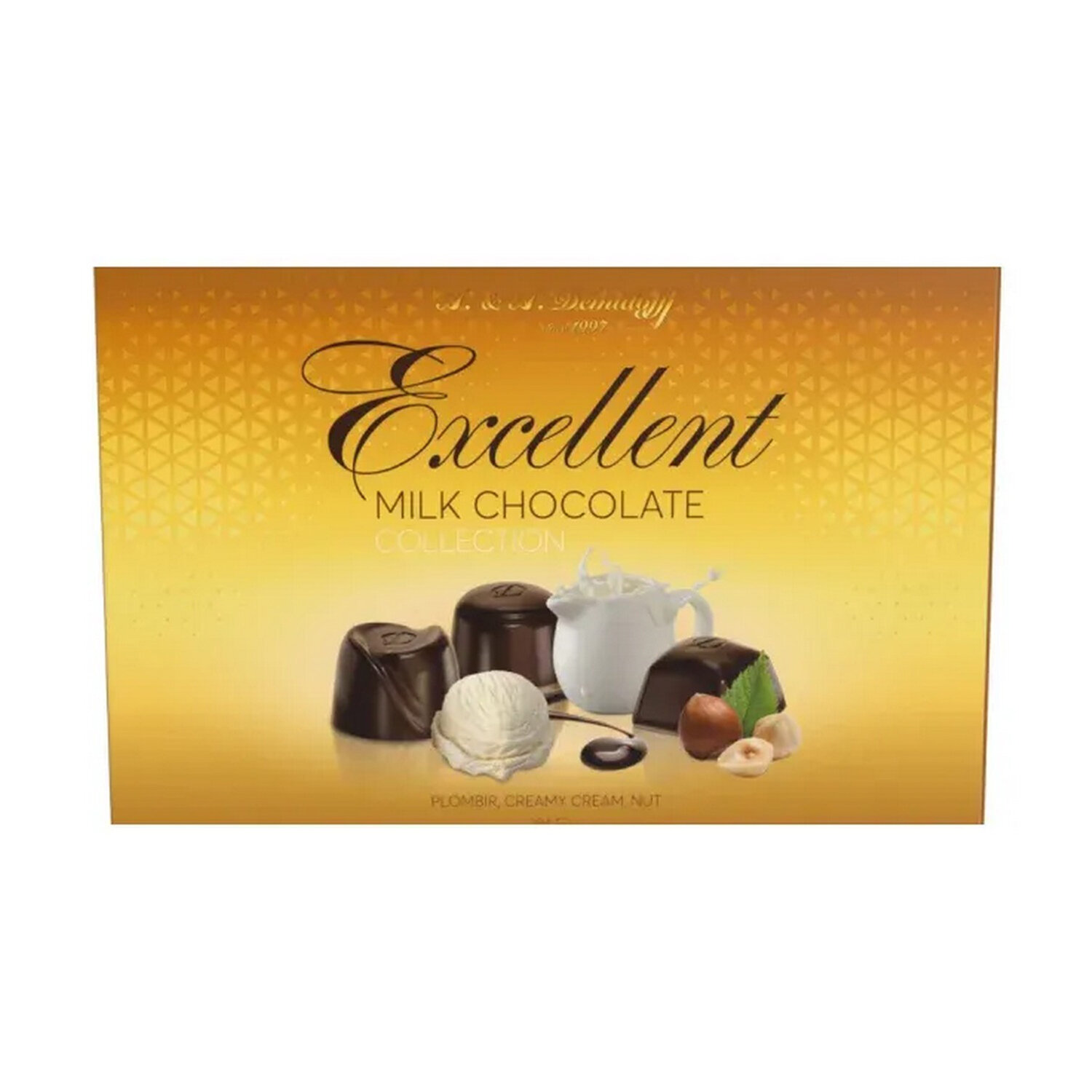 Конфеты шоколадные A&A DEMIDOFF с начинками пломбир, крем-сливки, орех 284 г