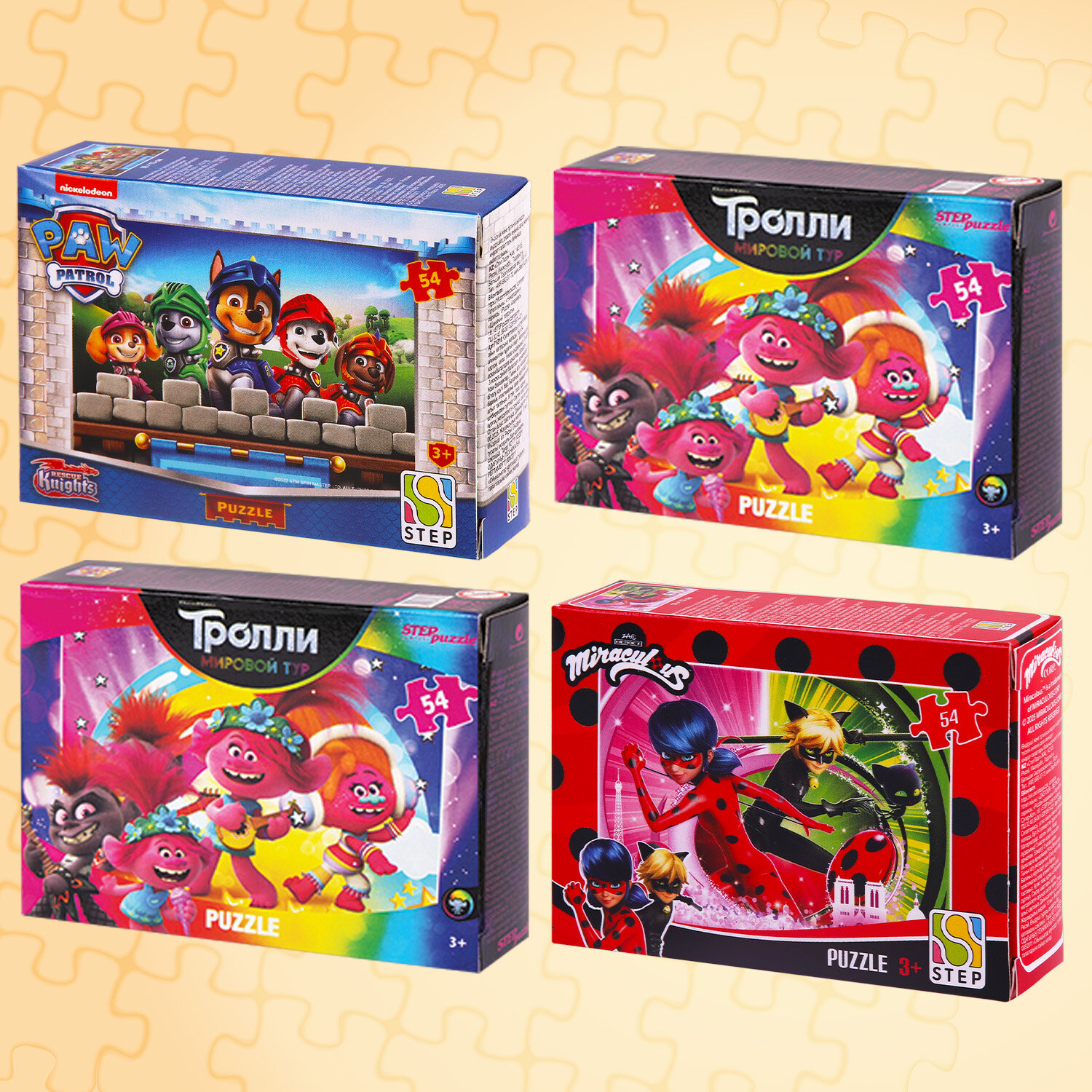 Комплект пазлов – это отличный способ приятно и с пользой провести время! Ваш ребёнок будет в восторге от красочных деталей с изображениями героев любимых мультфильмов!