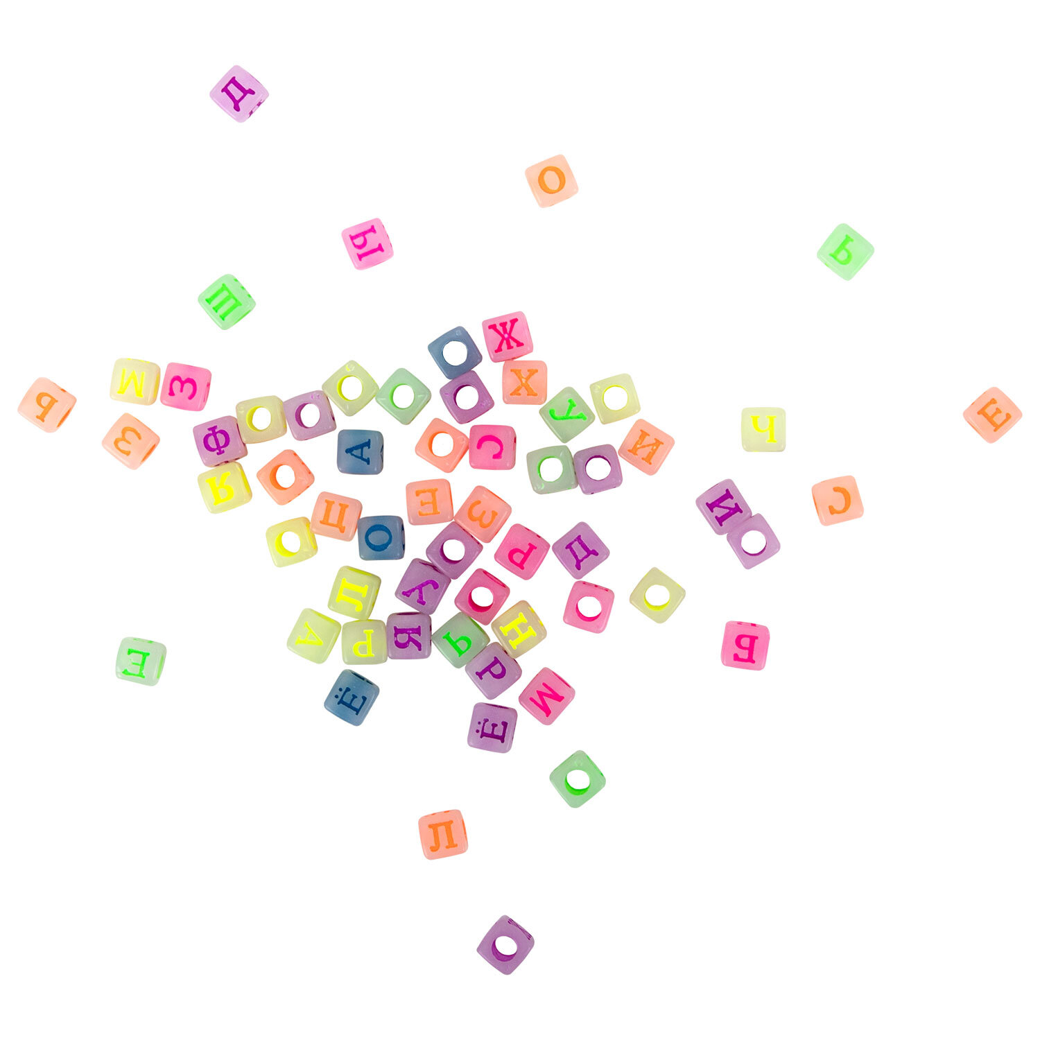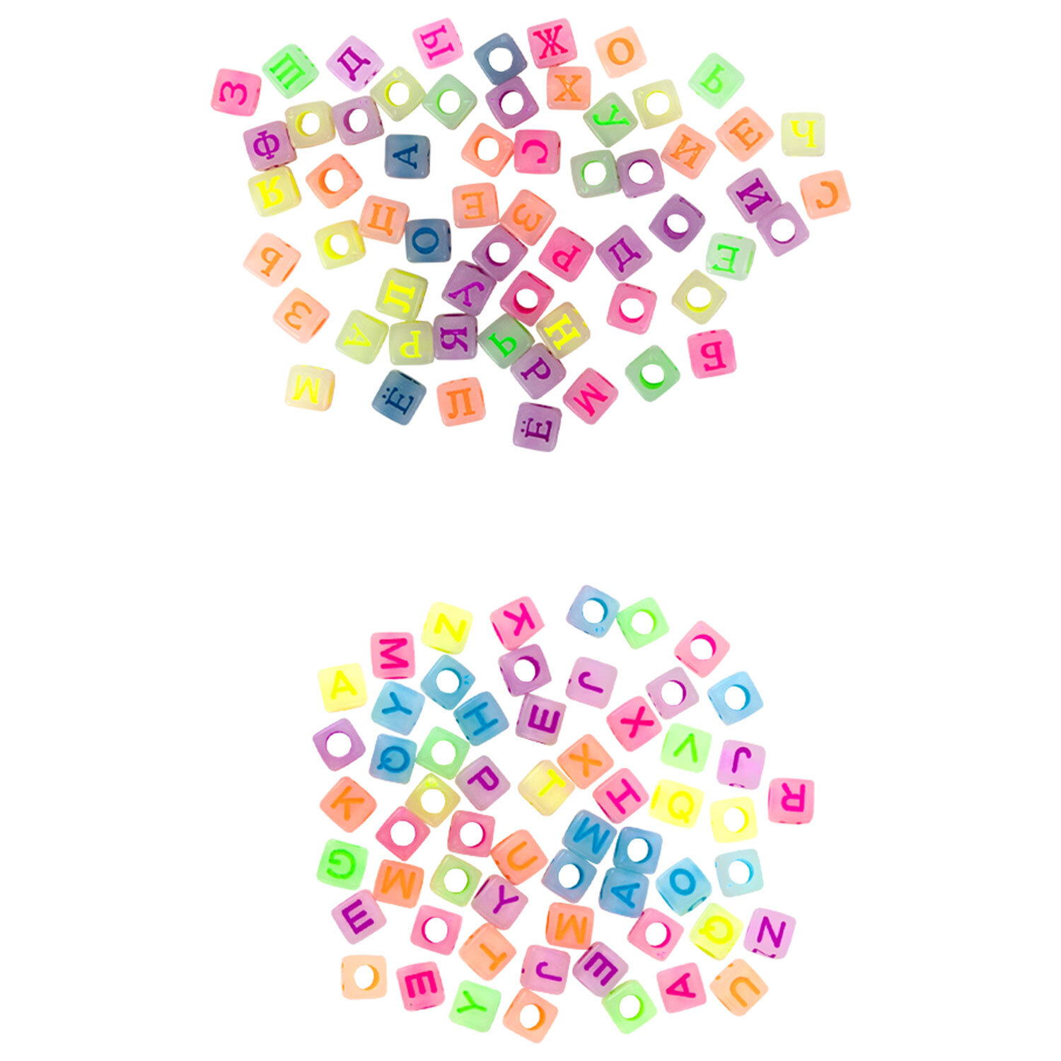 - светящиеся в темноте бусины с русским и английским алфавитом (всего 120 штук);