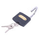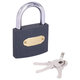 Замок навесной имеет литой чугунный корпус и оснащен полукруглой дужкой из закаленной стали, что делает его прочным и увеличивает сопротивляемость к взлому. Тип механизма секретности – цилиндровый. Три английских ключа в комплекте. Замок запирается автоматически (без использования ключа) при нажатии на дужку сверху, что облегчает его эксплуатацию.