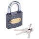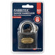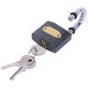 Замок навесной имеет литой чугунный корпус и оснащен полукруглой дужкой из закаленной стали, что делает его прочным и увеличивает сопротивляемость к взлому. Тип механизма секретности – цилиндровый. Три английских ключа в комплекте. Замок запирается автоматически (без использования ключа) при нажатии на дужку сверху, что облегчает его эксплуатацию.
