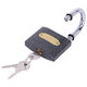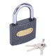 Замок навесной имеет литой чугунный корпус и оснащен полукруглой дужкой из закаленной стали, что делает его прочным и увеличивает сопротивляемость к взлому. Тип механизма секретности – цилиндровый. Три английских ключа в комплекте. Замок запирается автоматически (без использования ключа) при нажатии на дужку сверху, что облегчает его эксплуатацию.