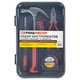 Инструменты изготовлены из закалённой углеродистой стали. Рукоятки выполнены из нескользящего ПВХ для максимального комфорта и безопасности во время использования. Набор предназначен для столярно-слесарных работ при осуществлении мелкого ремонта в быту.