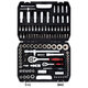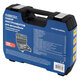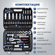 Инструменты размещены в ударопрочном кейсе с металлическими застёжками и ручкой для удобной переноски. Каждый элемент прочно зафиксирован внутри и не выпадает при транспортировке. Углубления для бит и торцевых головок промаркированы по размеру, что облегчает поиск нужного инструмента.