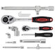 Рукоятки трещоток выполнены из нескользящего пластика с резиновыми вставками — для максимального удобства и безопасности при работе.