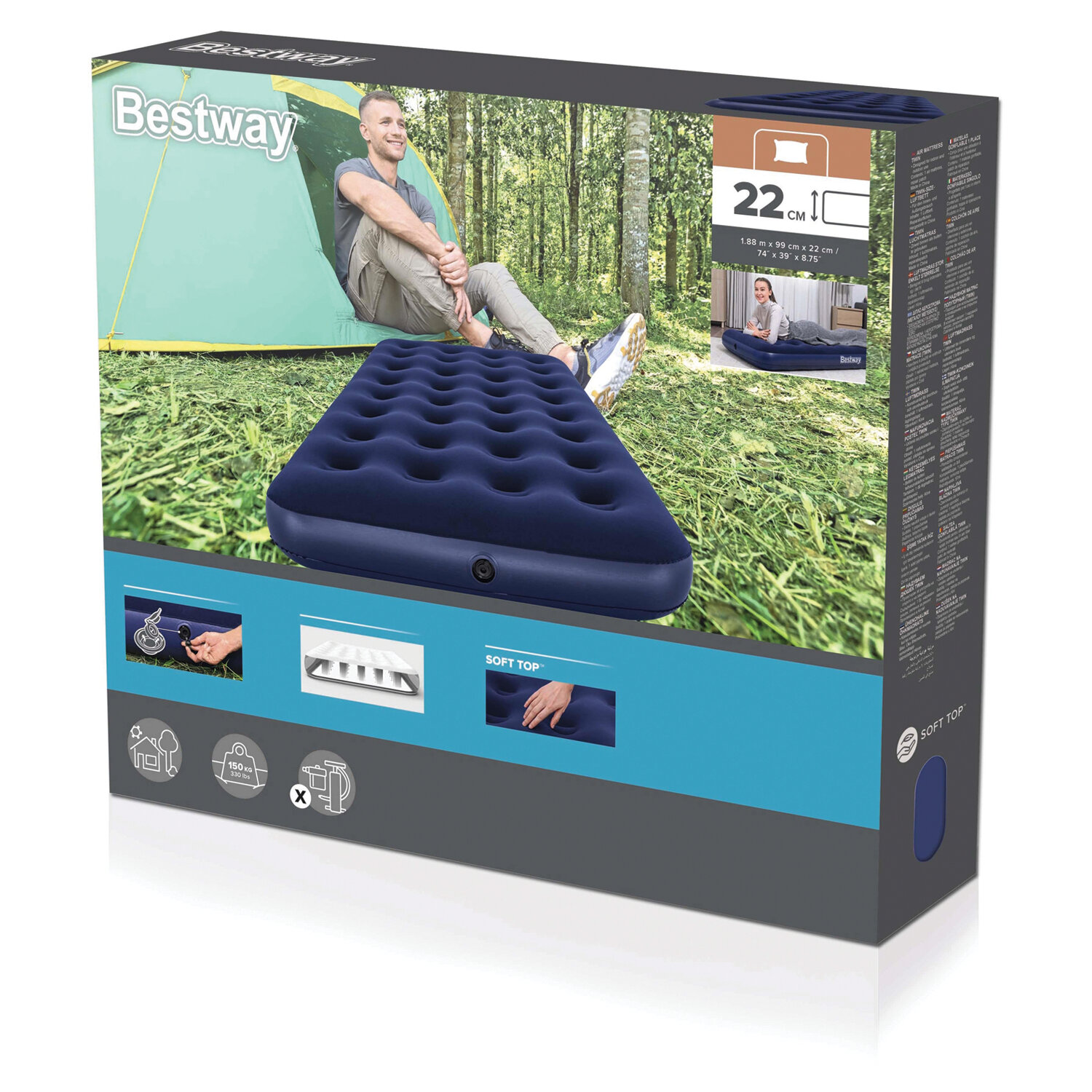 Надувной матрас BESTWAY размером 99×188×22 см подходит для использования как в помещениях, так и на открытом воздухе.