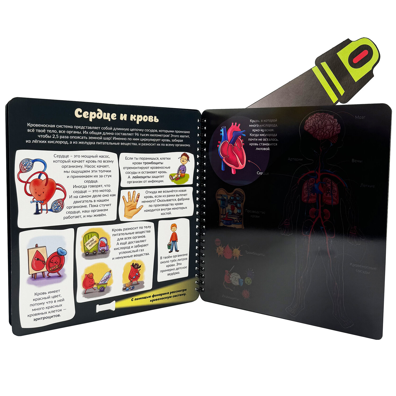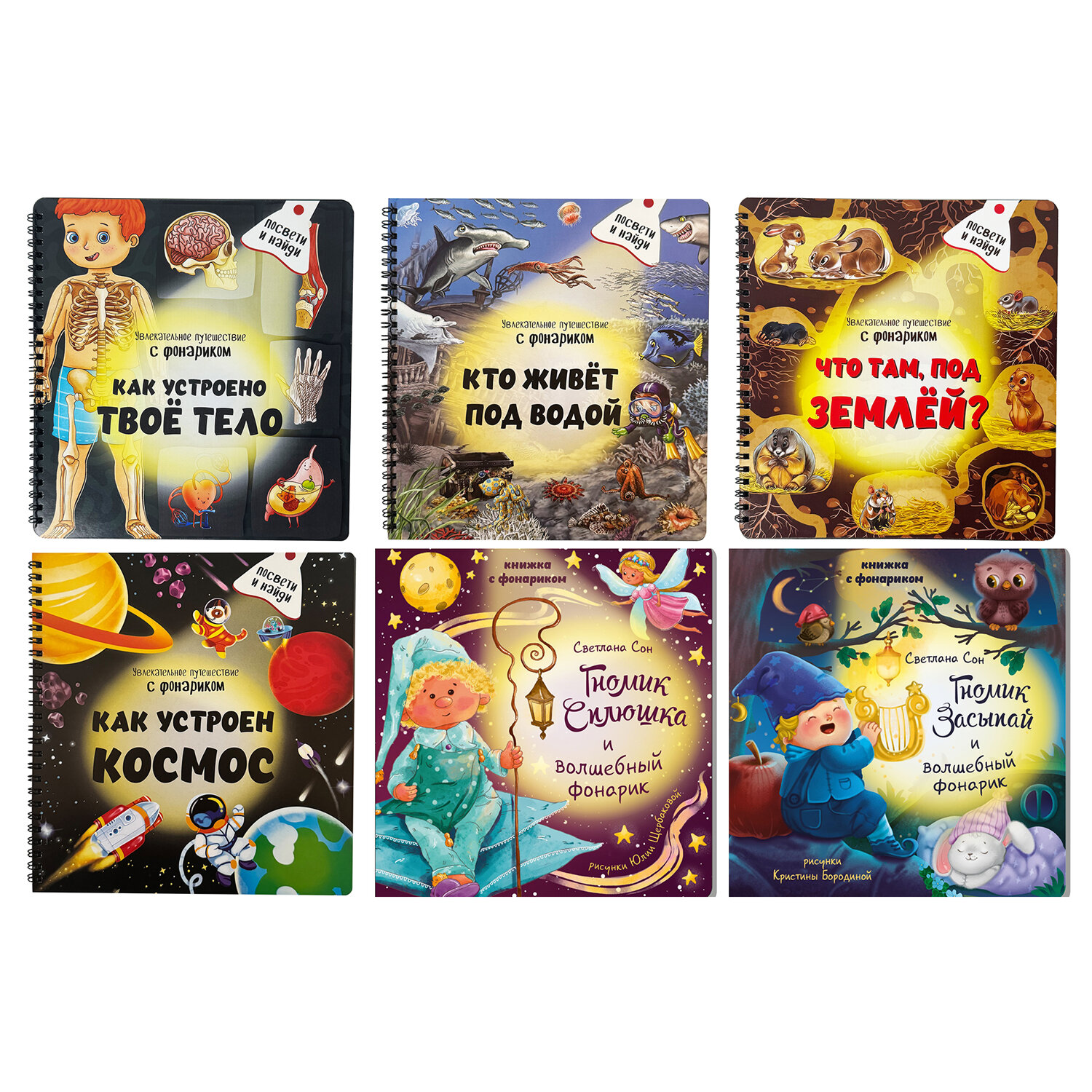 Эта книжка для малышей наполнена увлекательными страницами, которые можно рассмотреть с помощью фонарика, встроенного в книгу.