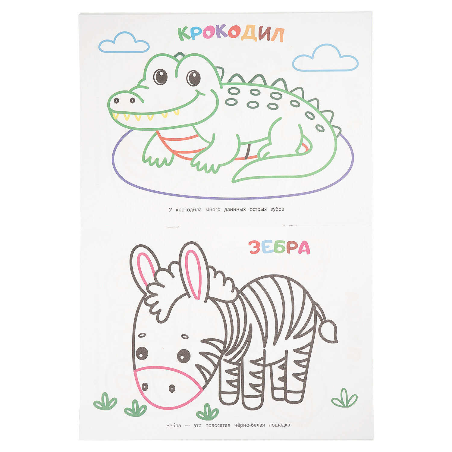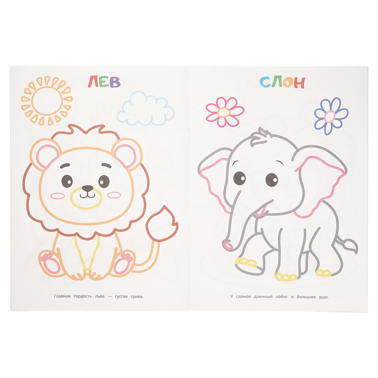 Раскраска познакомит малыша с различными животными и видами транспорта, поможет развить внимание, воображение и мелкую моторику.