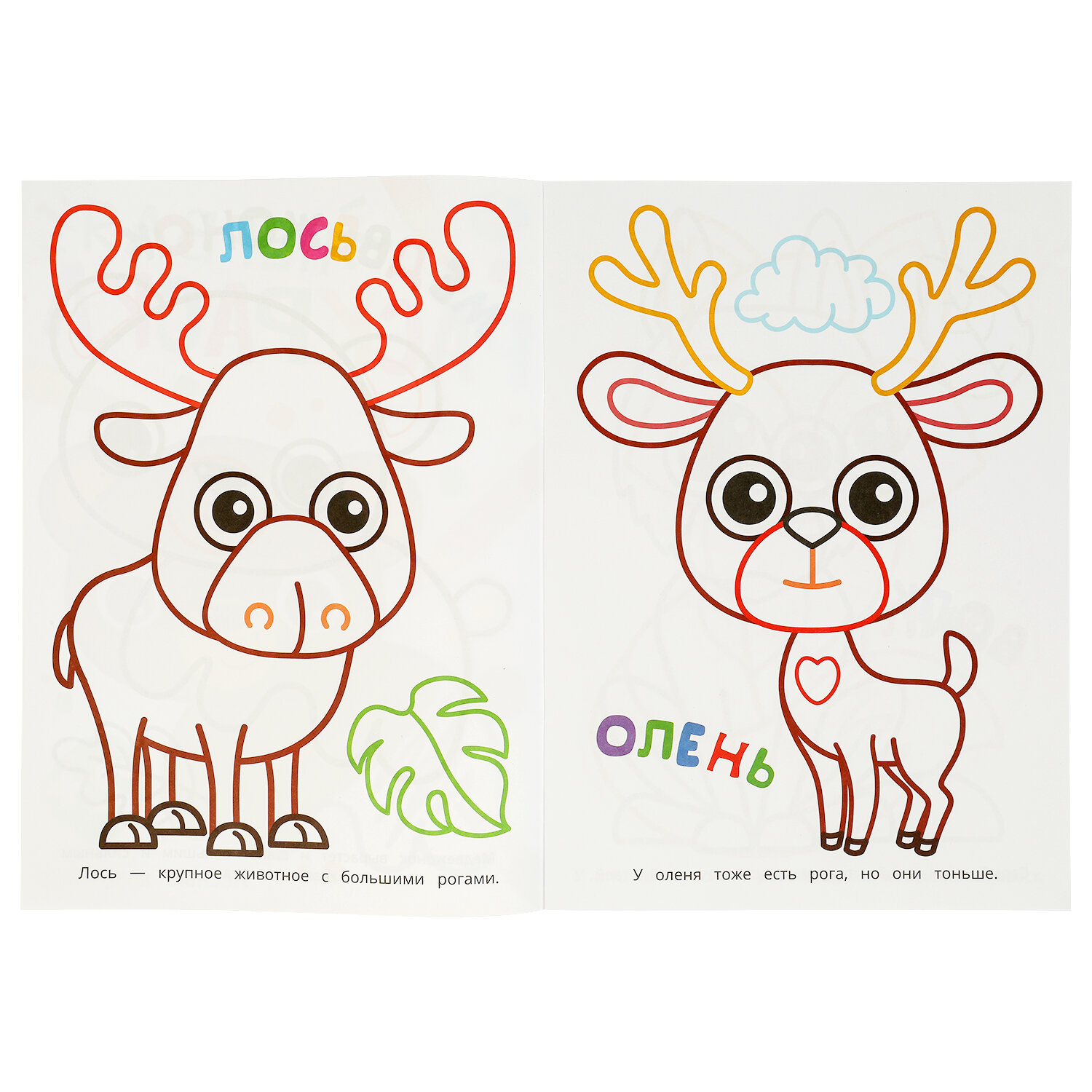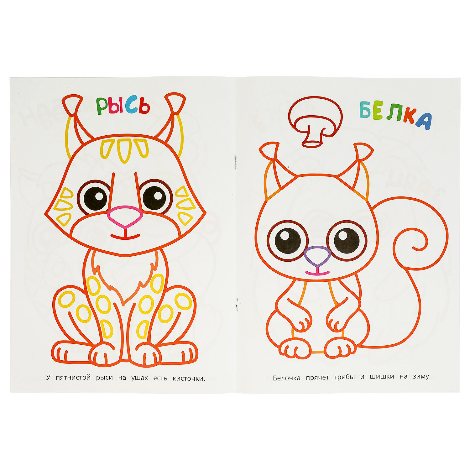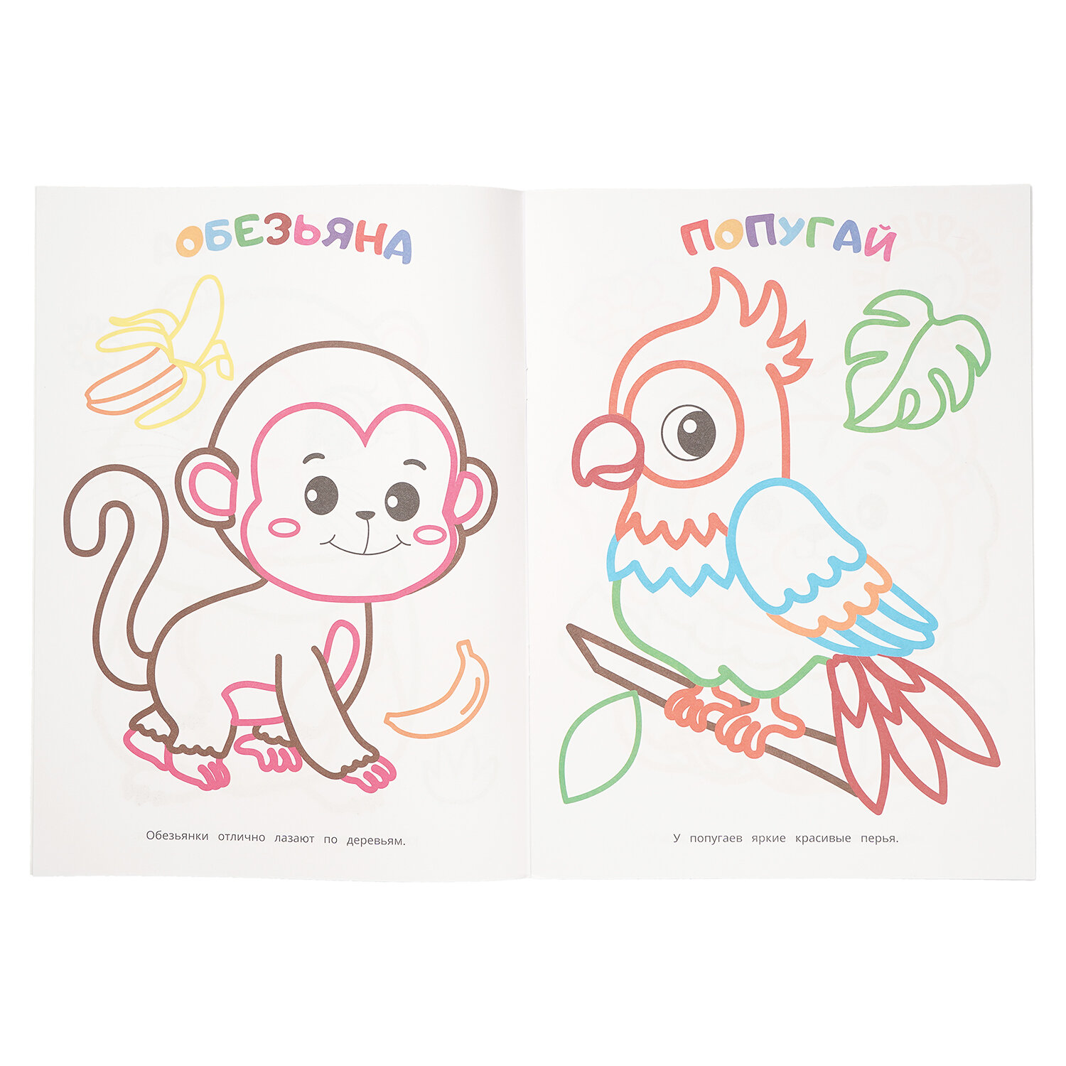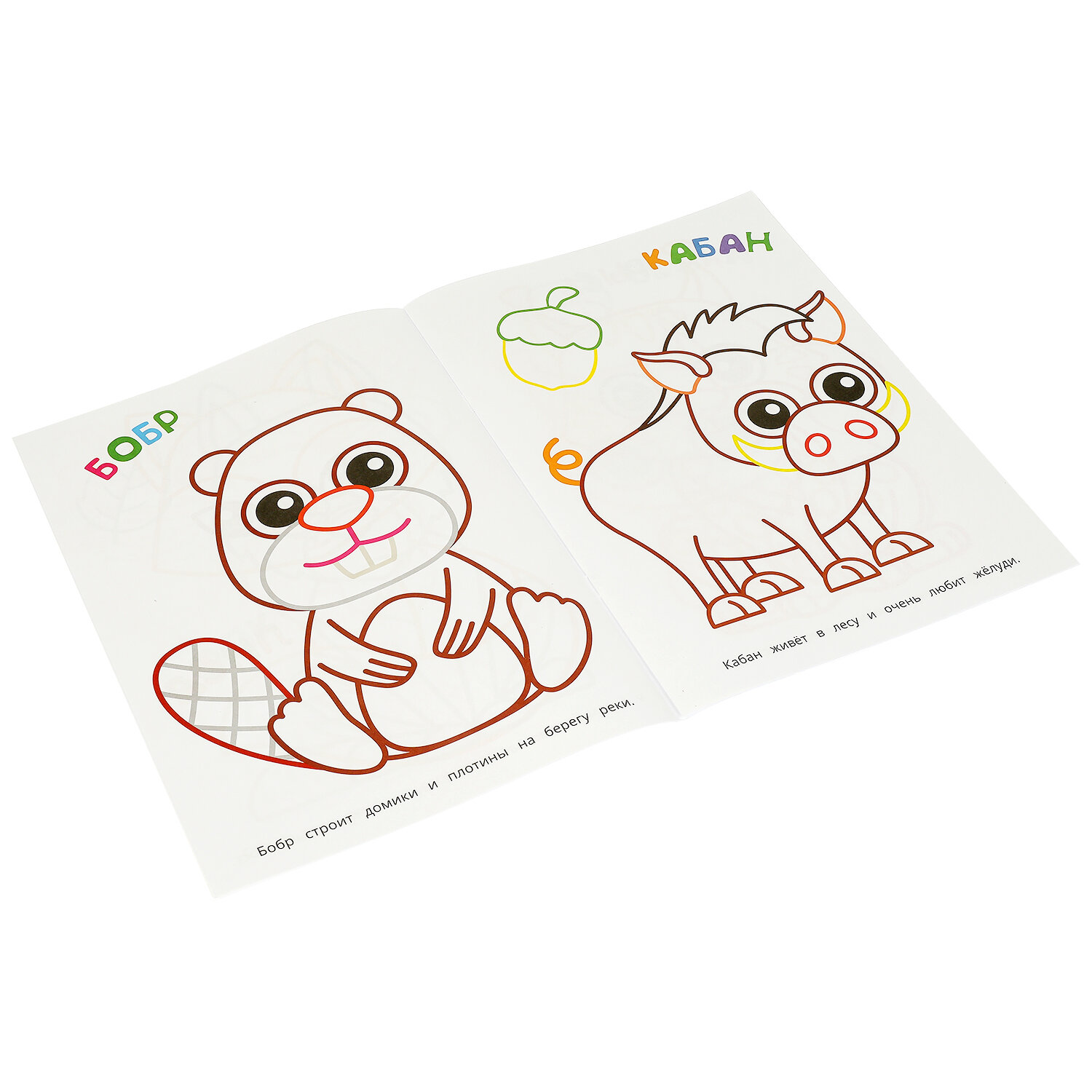 Яркий цветной контур рисунков служит ребенку подсказкой при выборе цвета.
