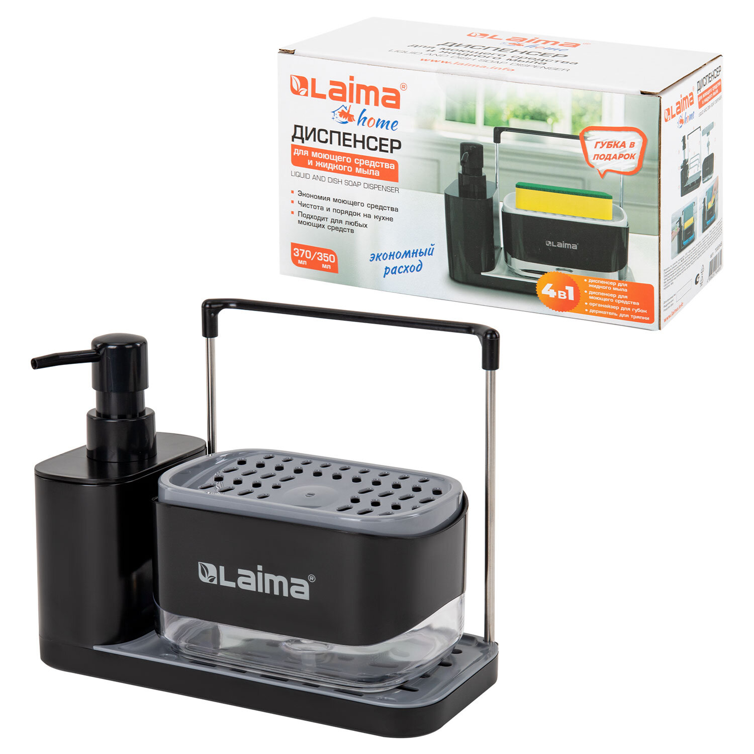 Диспенсер для жидкого мыла и моющего средства LAIMA HOME – идеальное решение для вашей кухни или ванной комнаты. Устройство оснащено держателями для тряпки и губок. Теперь поддерживать чистоту стало проще, чем когда-либо.
