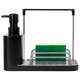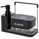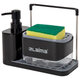 Диспенсер выполнен в виде двух емкостей для моющих средств из прочного пластика с помпами из полипропилена и полистирола, резиновые вставки на основании предотвращают скольжение. Также диспенсер оснащен держателями для тряпки и губок из нержавеющей стали. Моющее средство подается при нажатии на лоток для губки. В комплекте с диспенсером идет полиуретановая губка.
