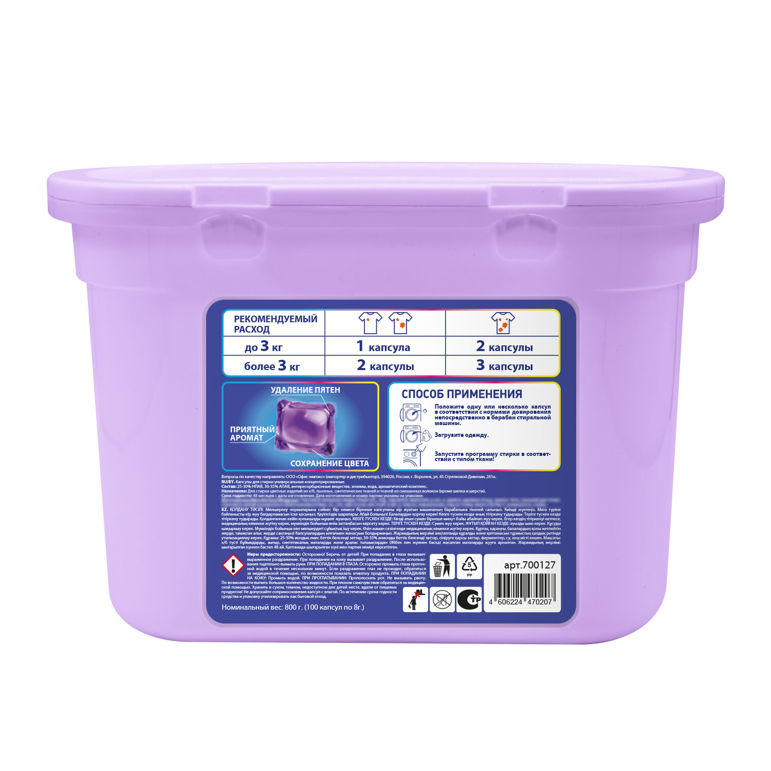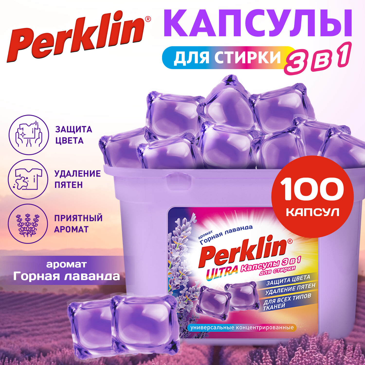 Капсулы для стирки белья PERKLIN (ПЕРКЛИН) «ГОРНАЯ ЛАВАНДА» концентрат 3 в 1 с кондиционером 100 шт., 700127