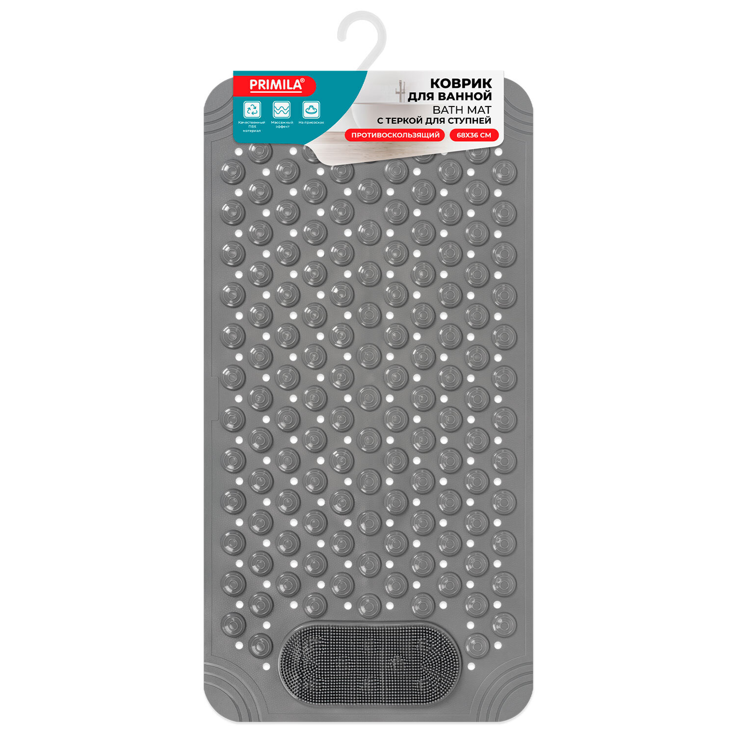 Противоскользящий коврик для ванны PRIMILA с теркой для ступней – безопасность и комфорт во время купания. Предназначен для защиты от падений во время водных процедур.
