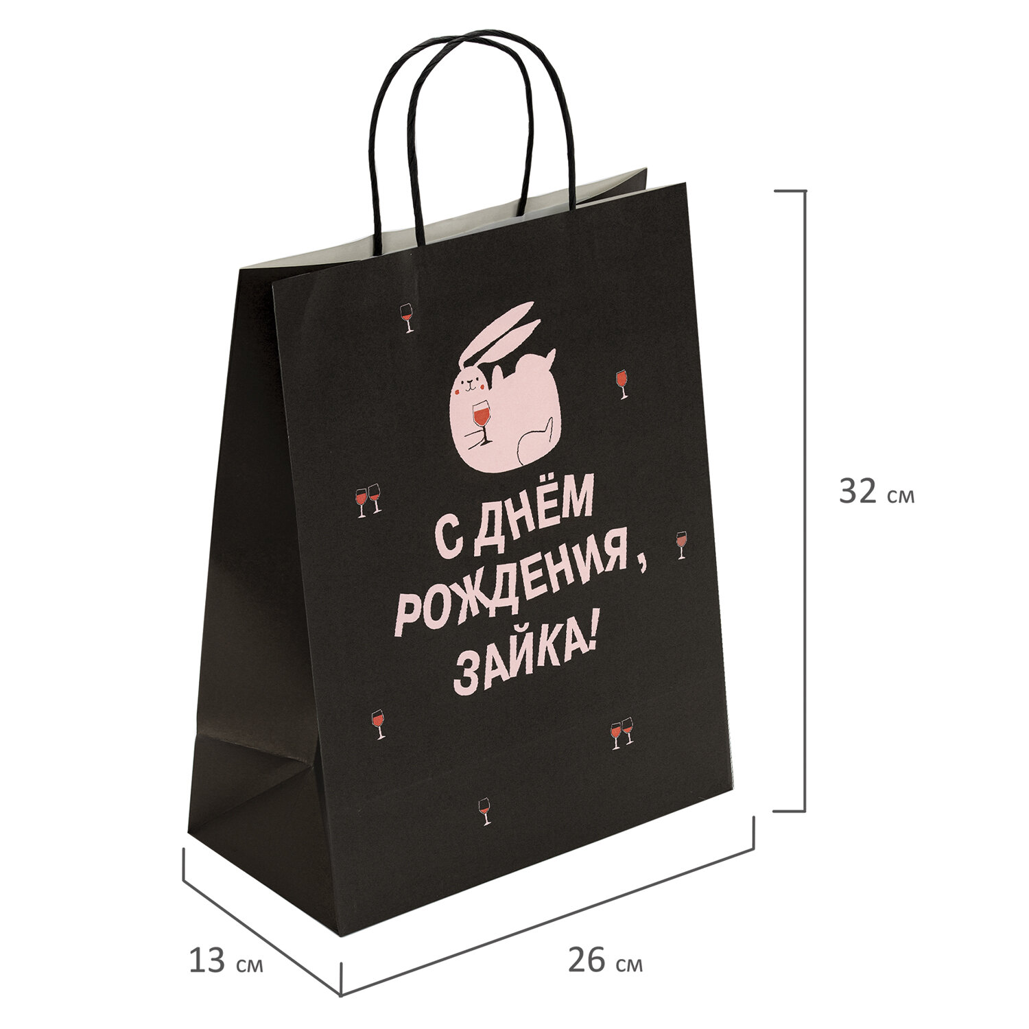 Пакет подарочный (1 штука) 26×13×32 см (L) «С днем рождения, зайка!», крафт, ЗОЛОТАЯ СКАЗКА, 700840