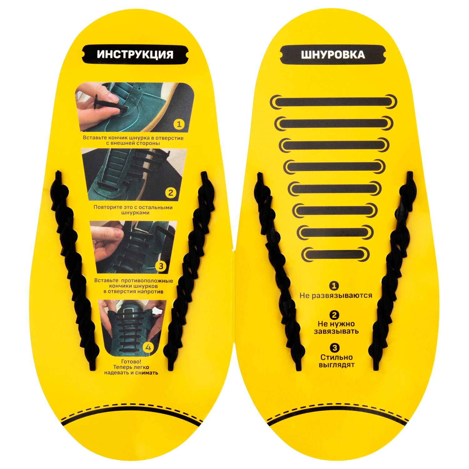 Отлично подходят как для взрослых так и для детей, не развязываются и предотвращают падения. Стильный черный цвет и лаконичный дизайн делают их универсальным аксессуаром для любой обуви.