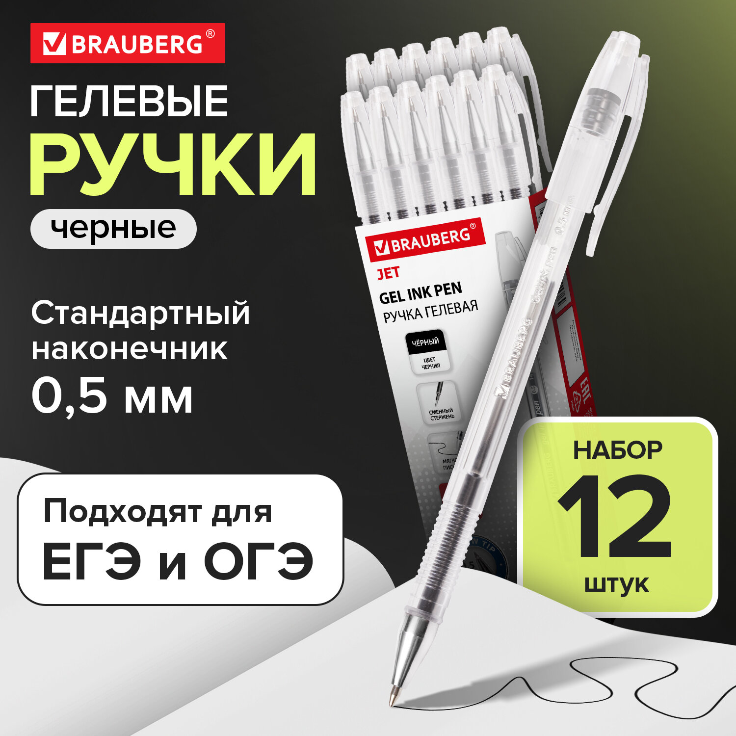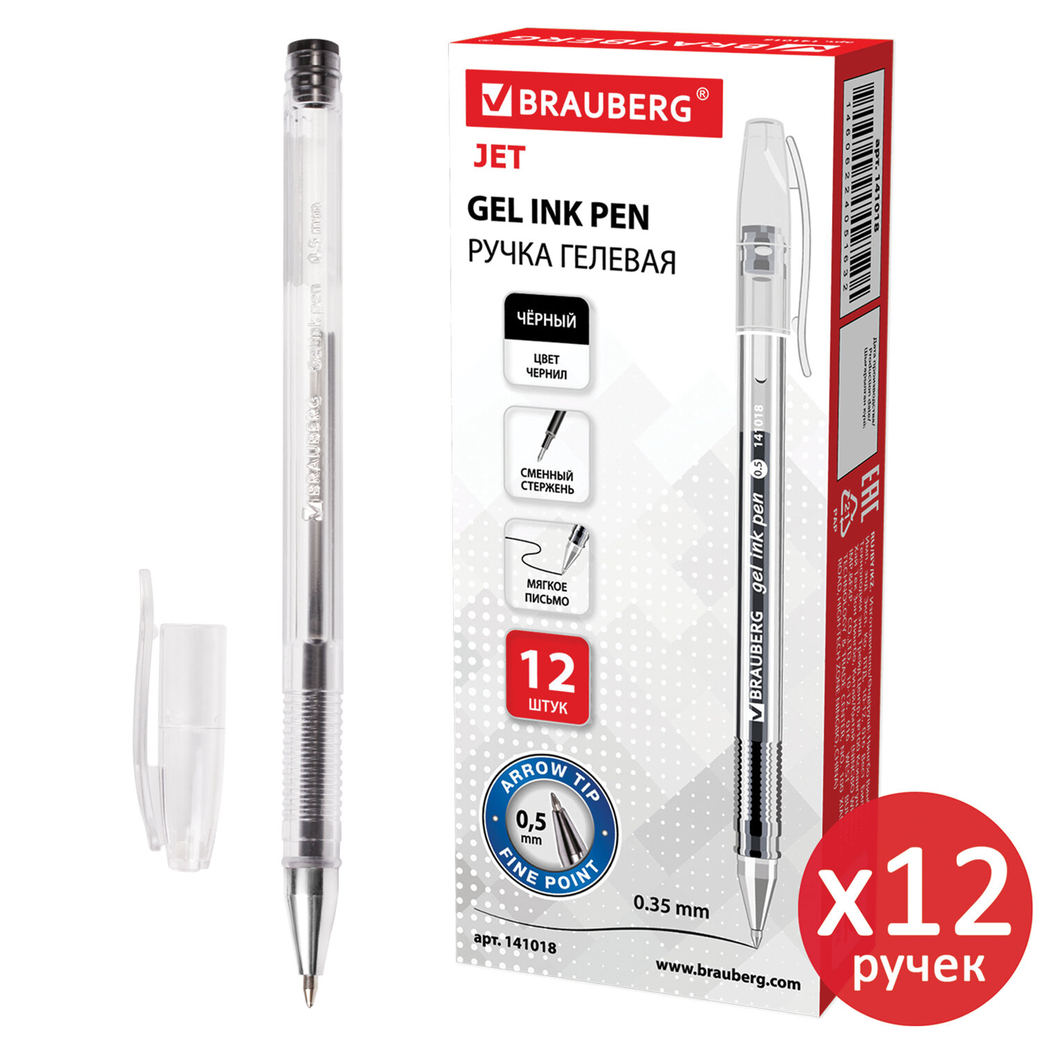 Ручка гелевая BRAUBERG «Jet», черная, ВЫГОДНАЯ УПАКОВКА, КОМПЛЕКТ 12 штук, линия письма 0,35 мм, 880208