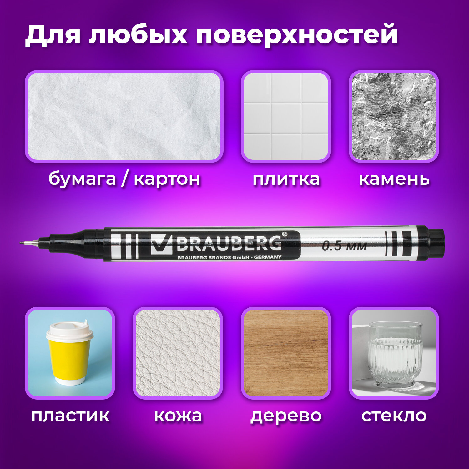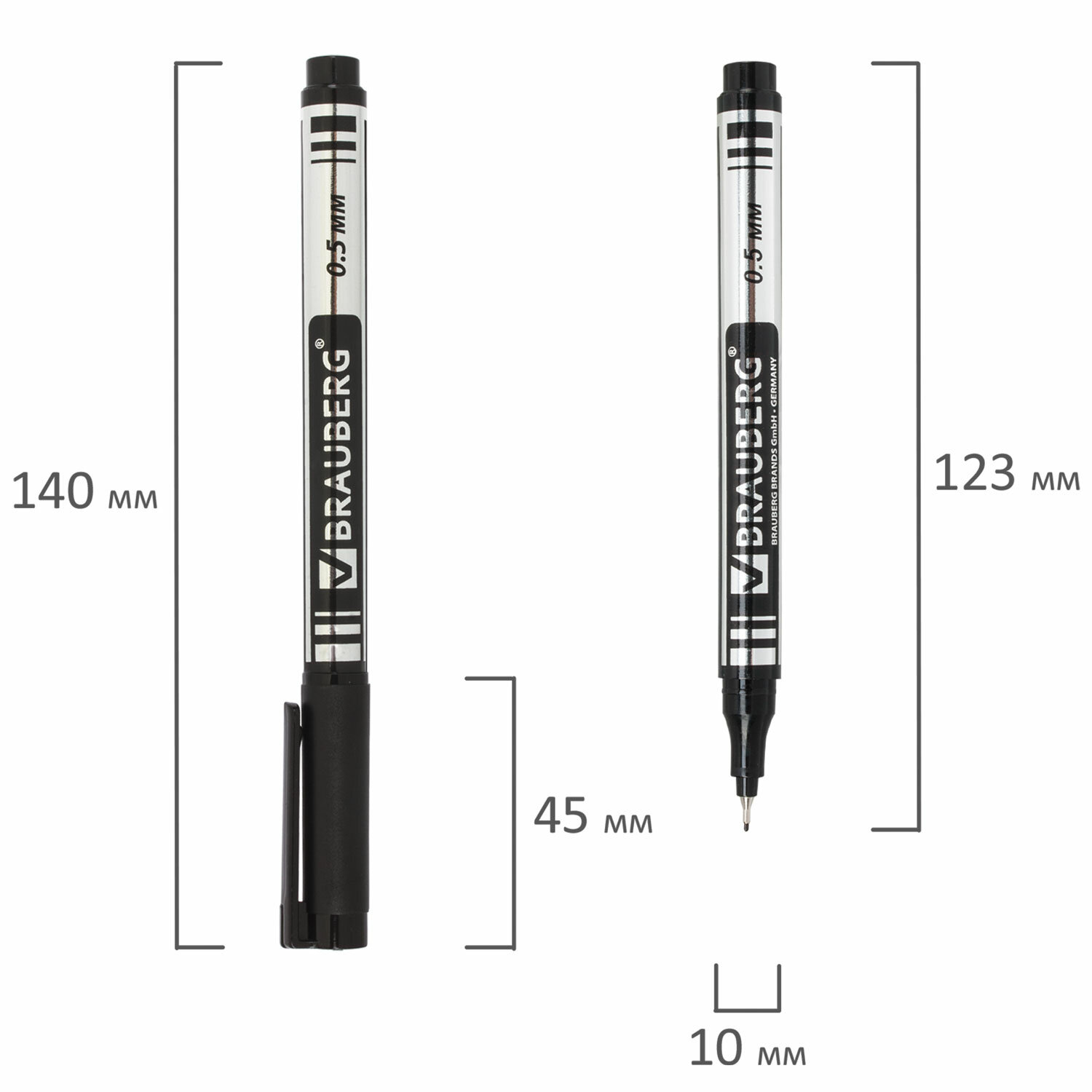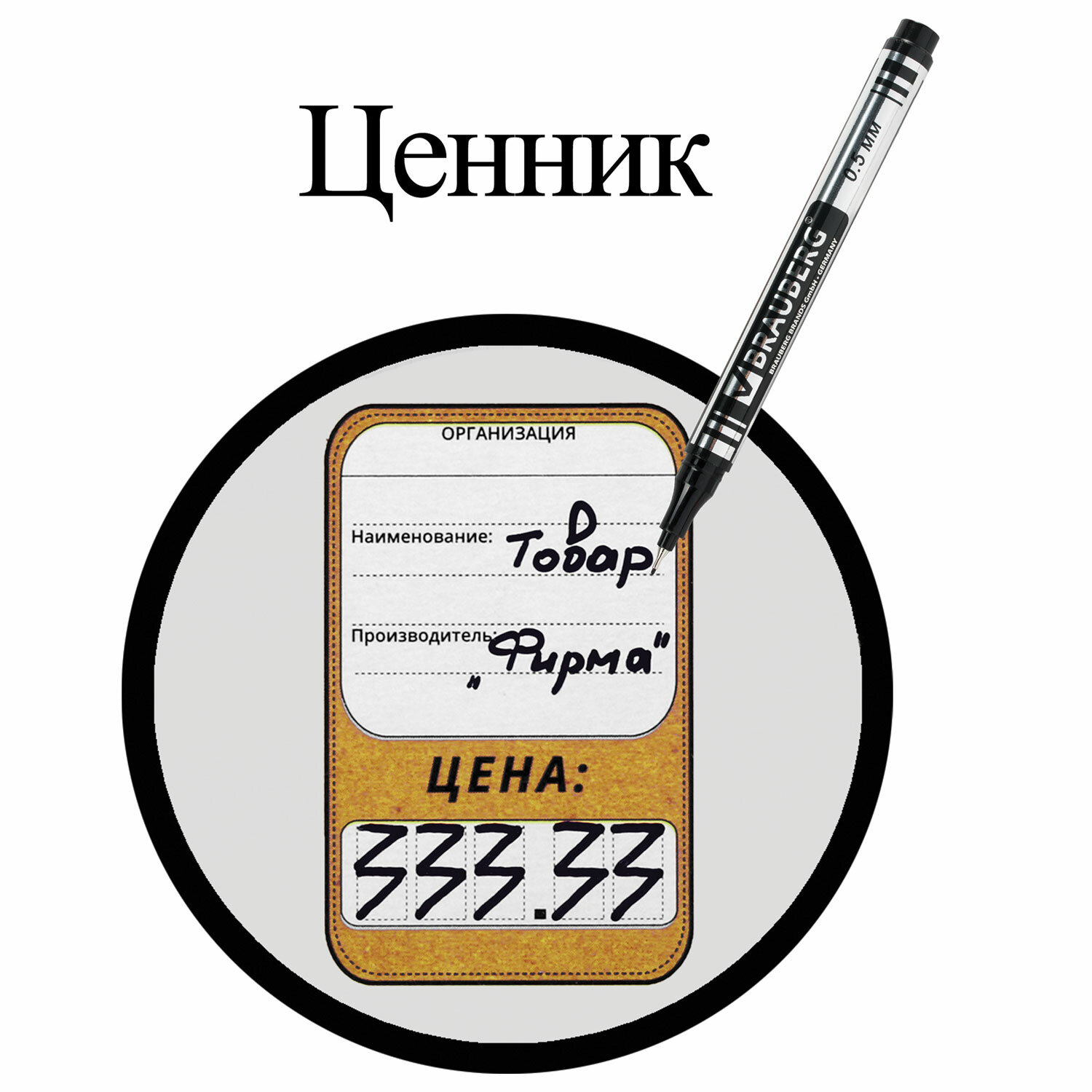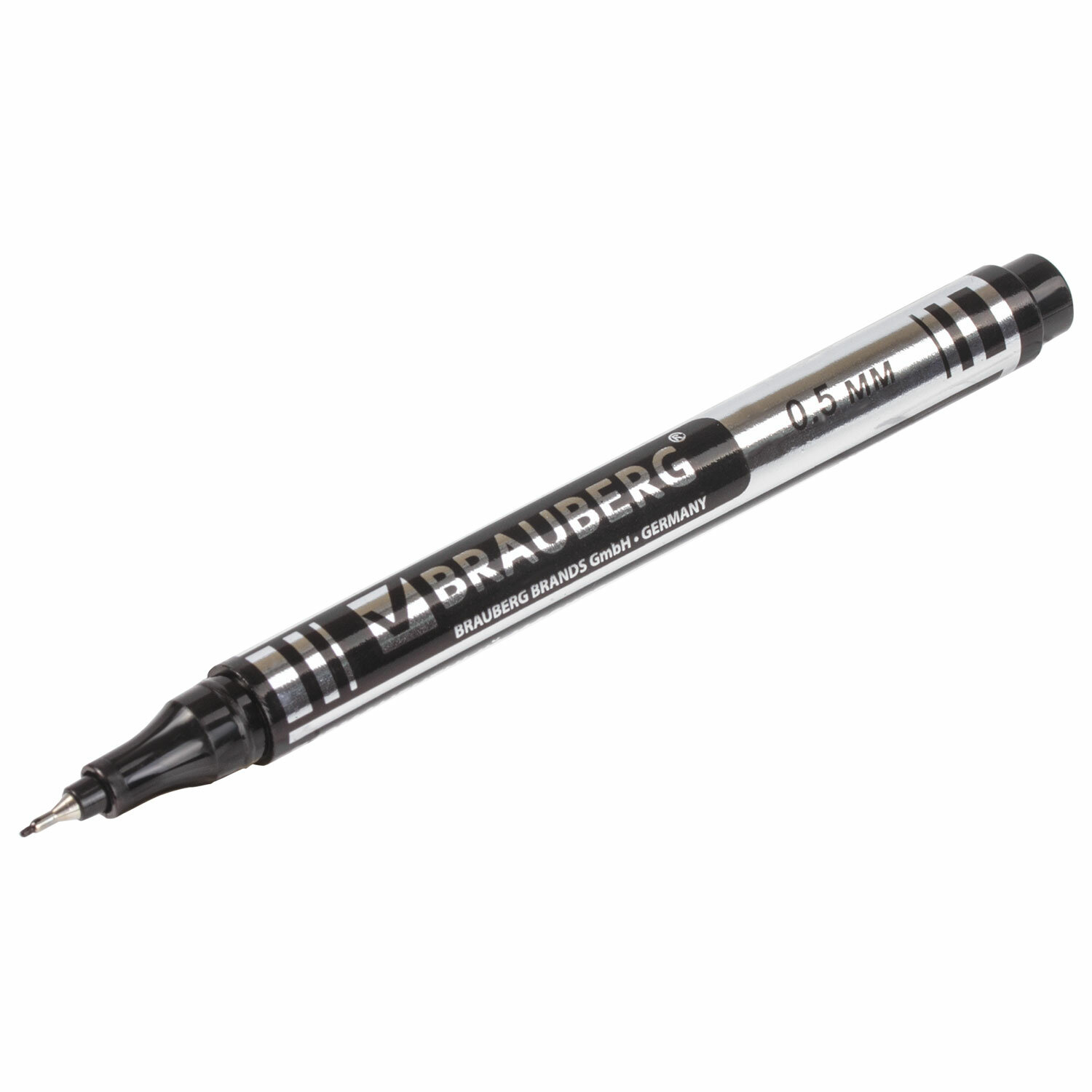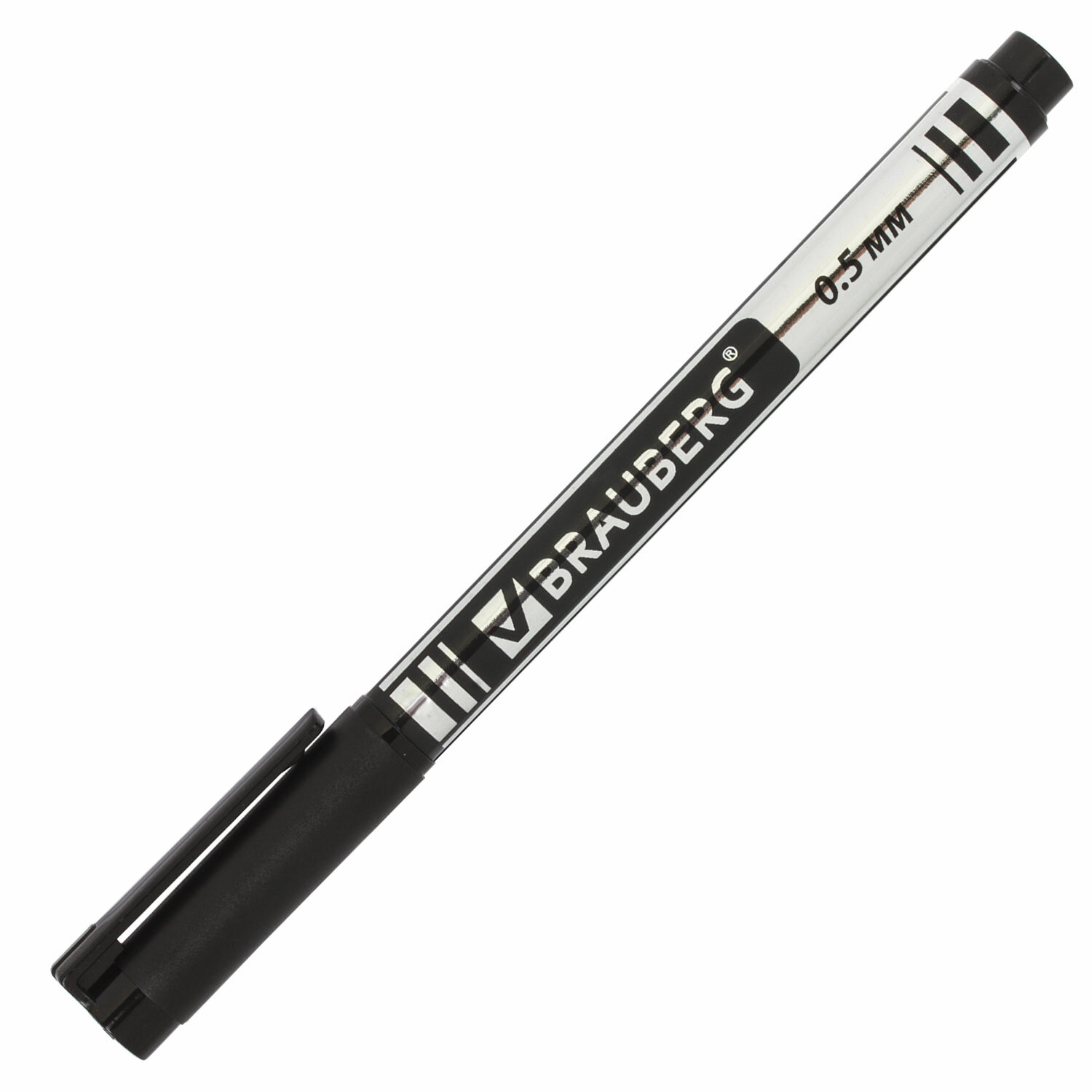 Маркер перманентный (нестираемый) черный тонкий 0,5 мм КОМПЛЕКТ 12 штук, BRAUBERG, 880245