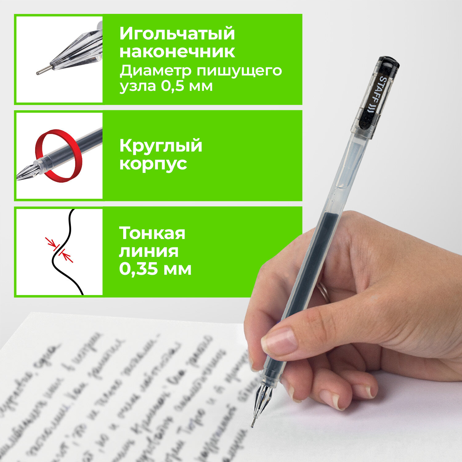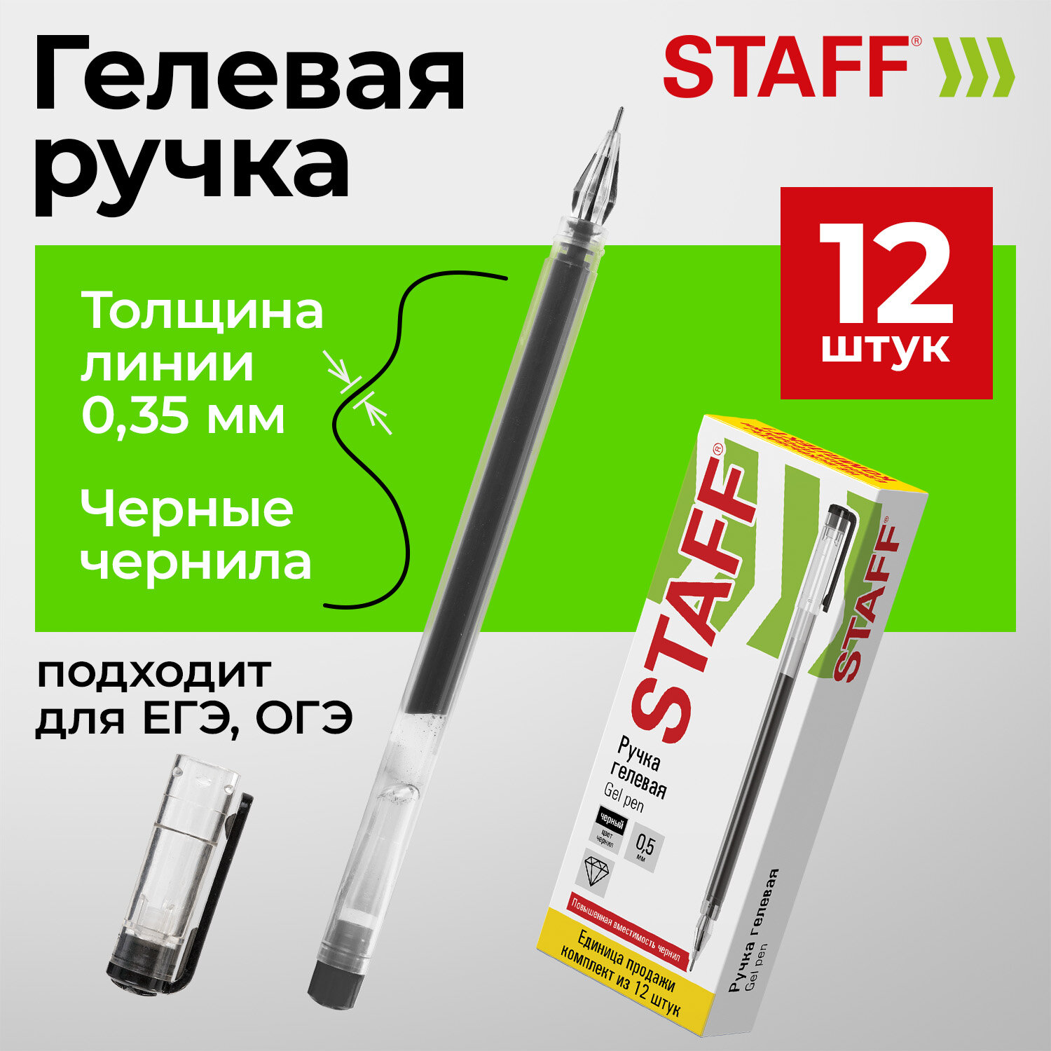 Ручка гелевая STAFF GP-675, черная, ВЫГОДНЫЙ КОМПЛЕКТ 12 штук, увеличенная длина письма 1000 метров, 880420