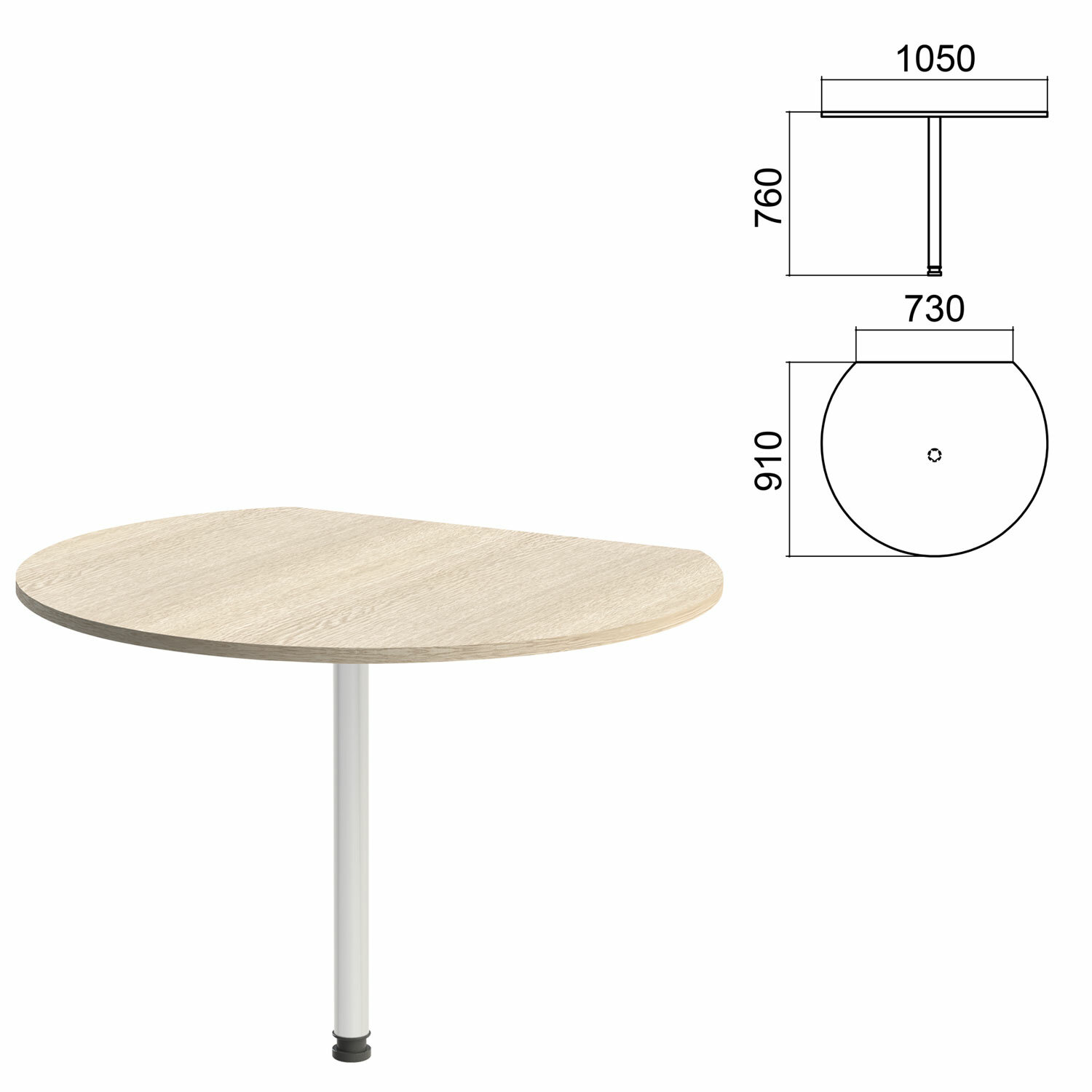 Стол приставной полукруг «Арго», 1050×910×760 мм, ясень шимо/опора хром (КОМПЛЕКТ)